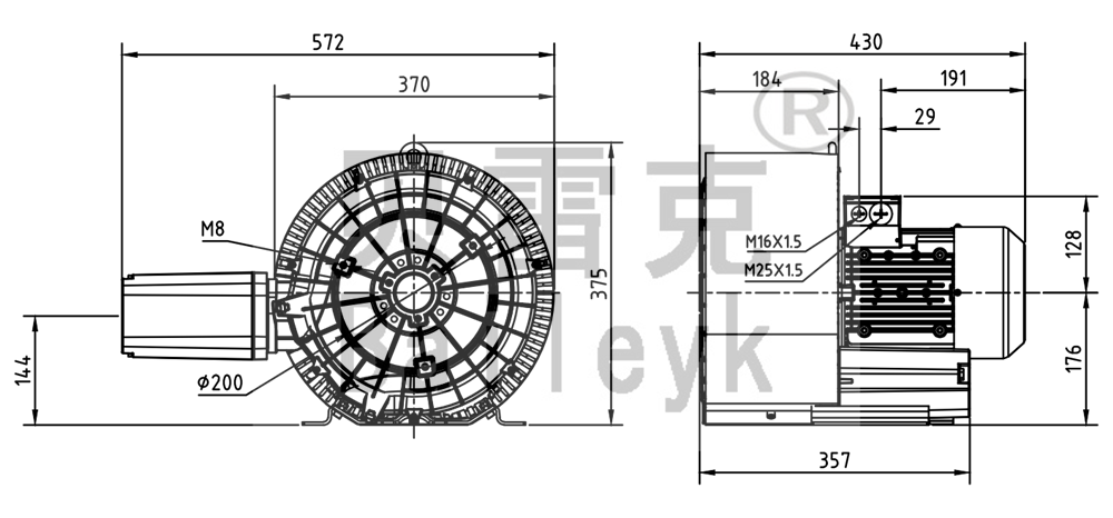 最大風(fēng)量:230m3/h 最大正壓:360mbar 最大負(fù)壓:290mbar 防護(hù)等級:IP55 噪音:72db 重量:35Kg