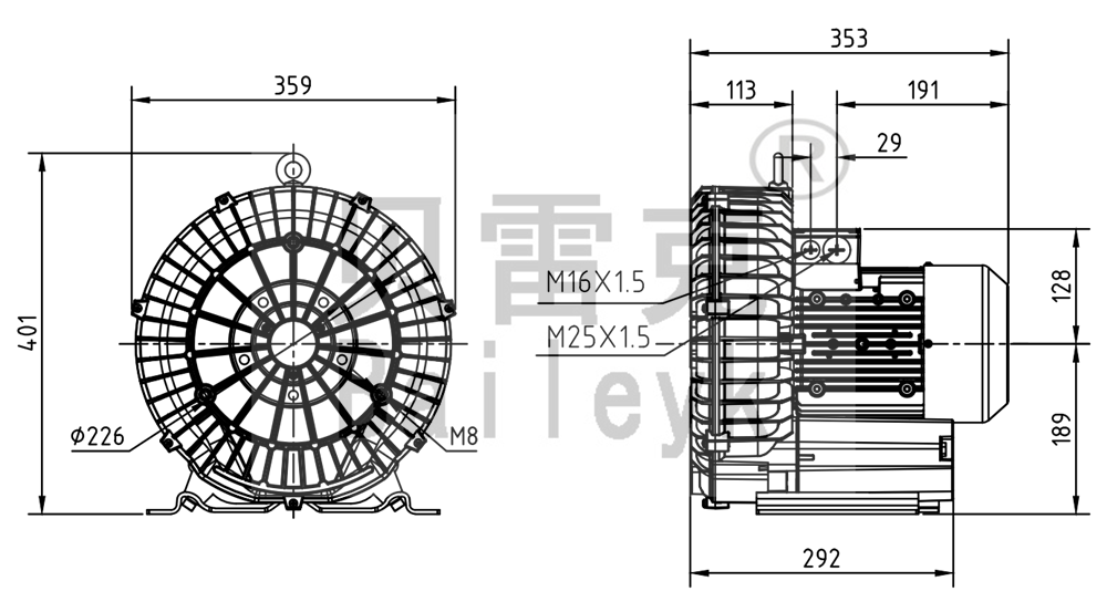 最大風(fēng)量:270m3/h 最大正壓:220mbar 最大負(fù)壓:235mbar 防護(hù)等級:IP55 噪音:67db 重量:27Kg