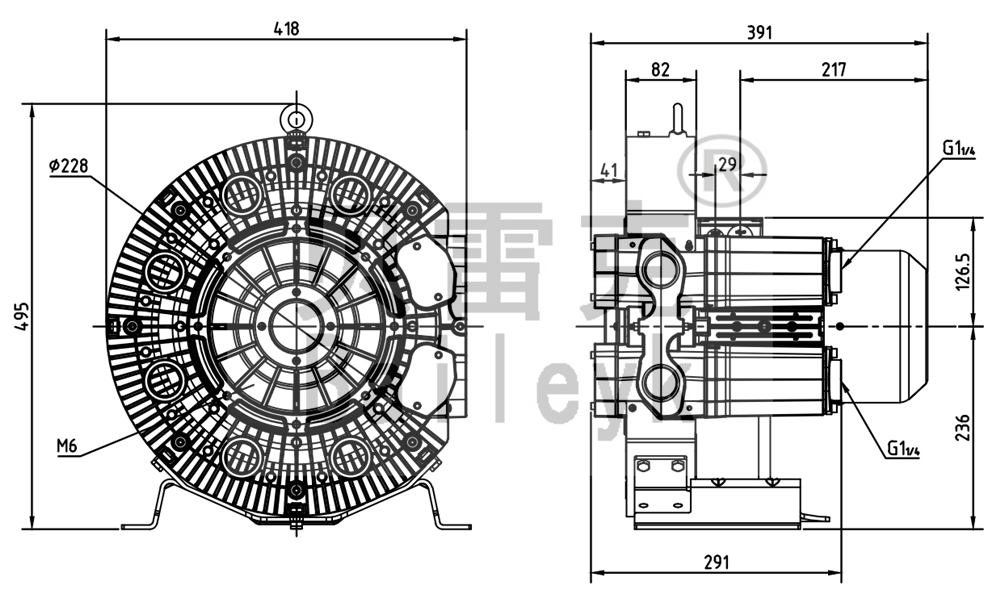 最大風量:165m3/h 最大正壓:480mbar 最大負壓:340mbar 防護等級:IP55 噪音:65db 重量:35Kg